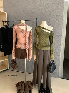 【WGWE】7229十三行女装2025秋装新款绑带斜肩长袖T恤小个子上衣