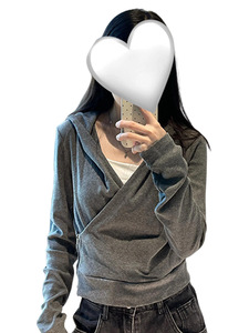 灰色连帽卫衣外套女初秋季2025新款小众设计感交叉打底衫针织上衣