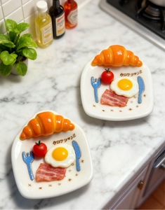 捏捏牛角包立体盘子卡通diy树脂小配件饰品盘子奶油胶发饰