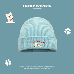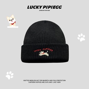 可爱小狗刺绣针织毛线帽女2025年新款秋冬季显脸小百搭大头围帽子