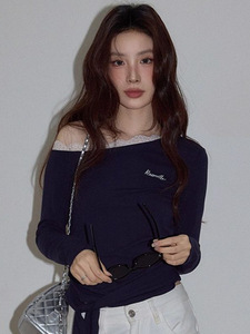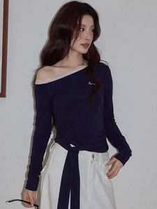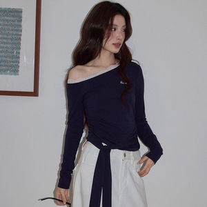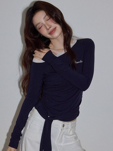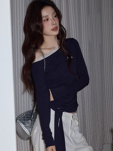 秋季新款纯欲风辣妹短款纯棉长袖t恤女修身显瘦百搭设计感上衣女