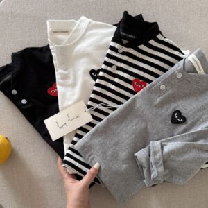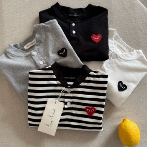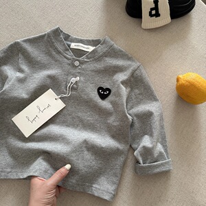 之之妈儿童长袖T恤2025春秋童装男女童爱心潮牌宝宝条纹打底上衣