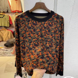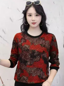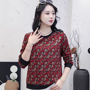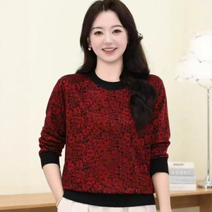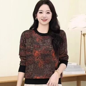 中老年女装秋装长袖小衫宽松大码妈妈春秋洋气花色圆领T恤打底新