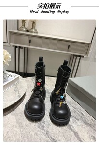 英伦风系带马丁靴女2025秋冬增高黑色复古机车百搭真皮厚底短靴女