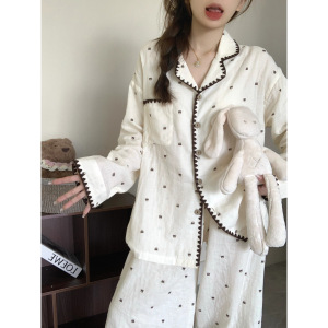 云朵棉纱布睡衣女春秋季小熊长袖套装韩版碎花家居服网红风可外穿
