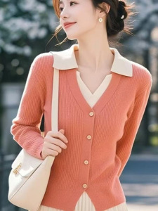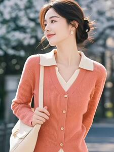 今年流行的漂亮纯色翻领针织开衫女2025早秋别致绝美法式时尚上衣
