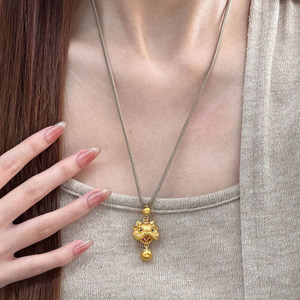 小红书爆款可爱醒狮吊坠棕色编绳毛衣链女高级感个性百搭一件代发