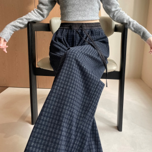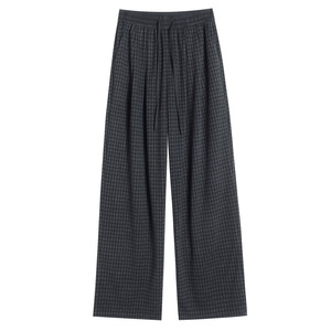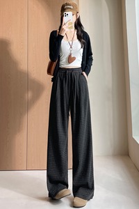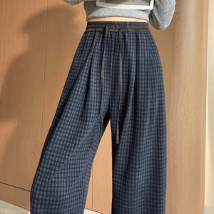 2025秋季新款高腰针织格子阔腿裤小个子直筒休闲拖地裤女