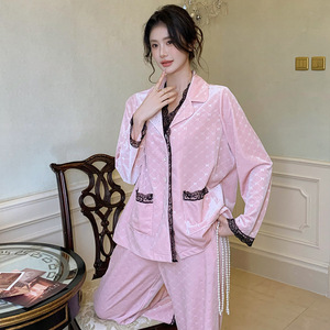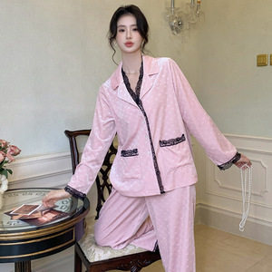 法式睡衣新品公主风冬季套装睡衣女薄绒翻领长袖长裤两件套家居服