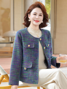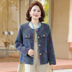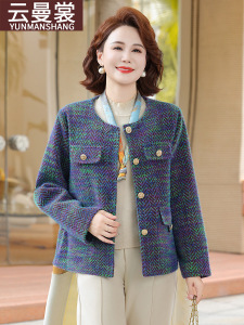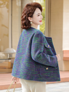 妈妈秋装小香风外套短款2025新款洋气中老年女装春秋时尚毛呢上衣