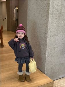 儿童加绒加厚卫衣套装2025冬季新款宝宝印花长袖上衣女孩保暖冬装