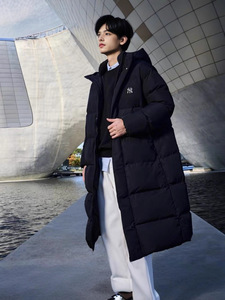 M*B长款羽绒服情侣秋冬新款纽约洋基队连帽外套男女同款