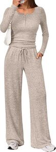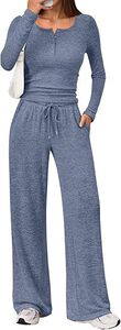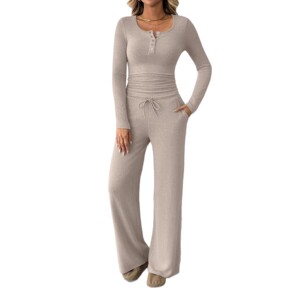 欧美跨境秋冬新款两件套2025外贸女装长袖上衣阔腿裤时尚休闲套装