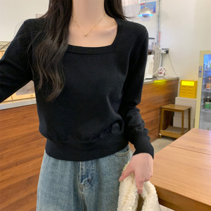 跨境批发秋冬韩版修身百搭方领显瘦内搭保暖长袖针织打底衫女上衣
