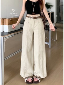 美式复古工装阔腿牛仔裤2025秋季新款高腰显瘦宽松直筒拖地长裤女