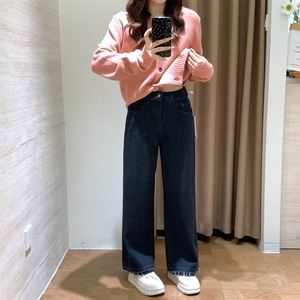 宝藏神裤!360蹦极弹高腰水洗棉设计感毛边阔腿裤牛仔裤女秋季新