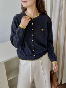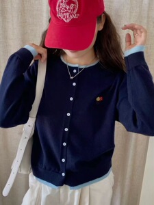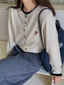 日系秋季甜美洋气撞色圆领刺绣针织衫宽松百搭时尚长袖开衫ZEZ