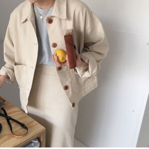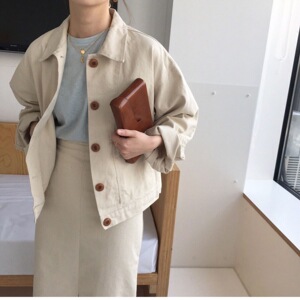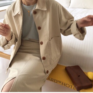 2025韩国东大门ins系扣复古简洁翻领BF风短外套女宽松休闲夹克