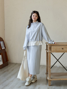 韩系假两件休闲套装秋装女装新款胖mm大码女装显瘦两件套65486