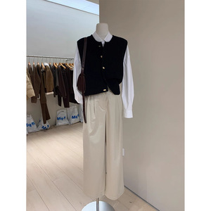 高级感金属扣马甲叠穿针织圆领开衫短外套显气质女秋冬软糯羊绒衫