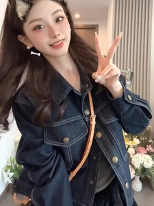 韩版时尚休闲翻领牛仔外套女秋季港风复古百搭洋气减龄夹克上衣潮
