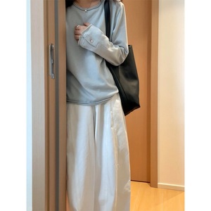 MISMARM 韩系慵懒风设计感蓝色长袖T恤女秋季宽松休闲百搭打底衫