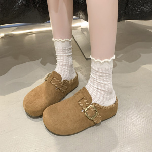 厚底内增高勃肯鞋女2025秋季新款复古包头半拖鞋外穿一脚蹬博肯鞋
