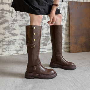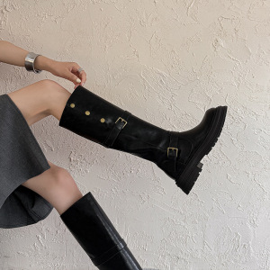 zijin家~店主推荐~英伦风圆头骑士靴复古两穿厚底时装长靴秋冬款~