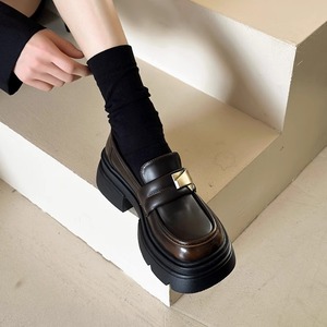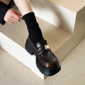 英伦风单鞋金属扣厚底小皮鞋女新款粗跟jk松糕鞋一脚蹬乐福鞋女
