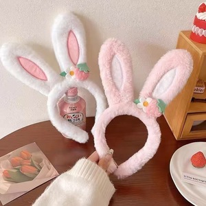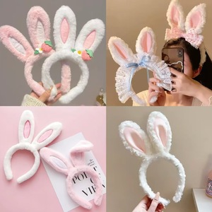 新款可爱蝴蝶结兔耳朵毛绒发箍蕾丝花边洗脸头箍儿童发卡头饰批发