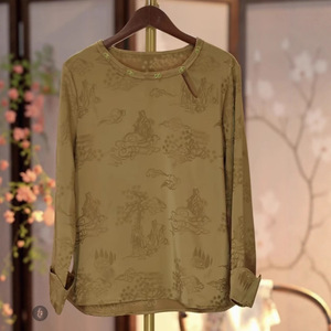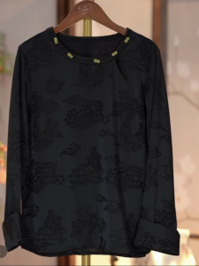 2025新款圆领套头长袖T恤衫文艺民族风国风马甲打底衫内搭小衫