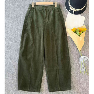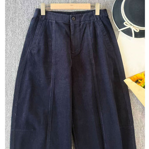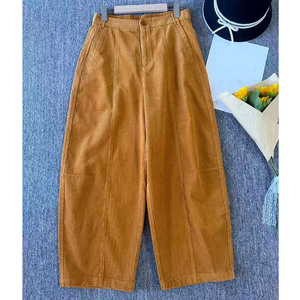 深圳25新款南油女装欧货时尚高腰显瘦休闲宽松灯芯绒工装九分裤女