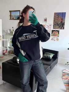 现货韩国Ames经典圆领卫衣男女情侣同款美式复古球衣风长袖上衣秋