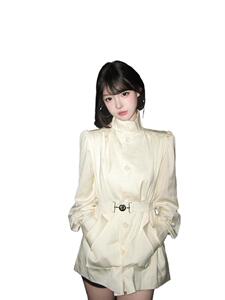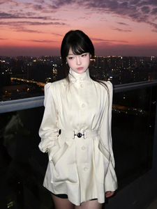 法式千金风立领泡泡袖收腰短款小个子风衣外套女秋季新款大衣开衫