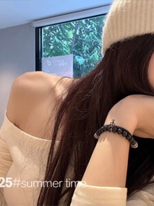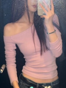 SUNONEON 纯色斜肩露肩长袖针织T恤女早秋百搭修身腰打底衣