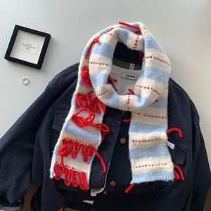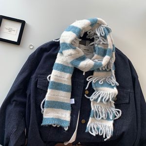 韩版ins 复古撞色条纹设计针织围巾女秋冬保暖百搭学生情侣围脖潮