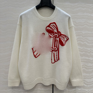 蝴蝶结嵌花套头长袖毛衣 休闲慵懒风宽松百搭圆领上衣秋 AT72718