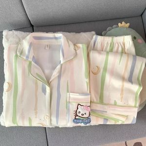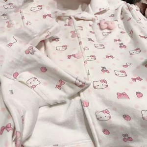 超萌满印凯蒂猫睡衣女秋冬季保暖德绒长袖长裤套装美少女家居服