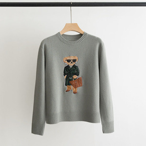 美系卡通小熊毛衣羊绒羊毛混纺秋季上衣女士针织打底衫2025新款