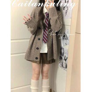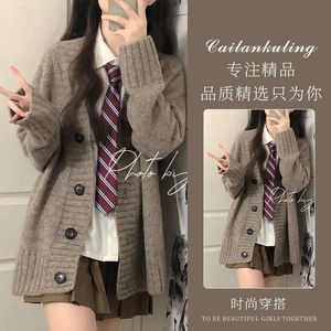 三件套装/单件秋冬复古慵懒风针织毛衣开衫女学生百搭衬衫百褶裙