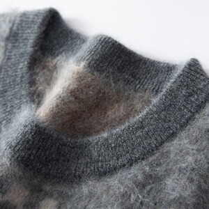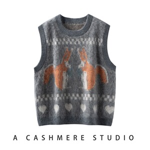 2025新款85%山羊绒15%桑蚕丝羊绒拉绒女士马甲提花加厚针织马甲