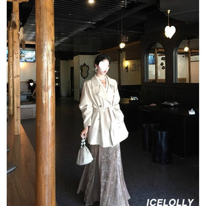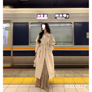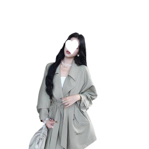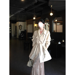 现货巨好看收腰短款风衣外套女新款早秋小个子中长款大衣
