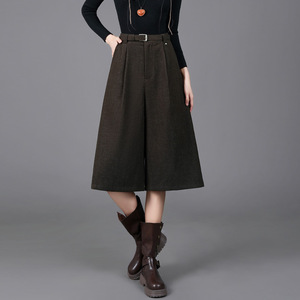 毛呢西装七分裤女2025秋冬季新款高腰简约宽松气质阔腿大脚休闲裤