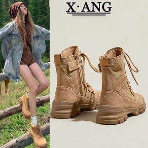 帆布马丁靴女款沙漠靴2025新款秋季户外徒步登山鞋厚底工装靴子女