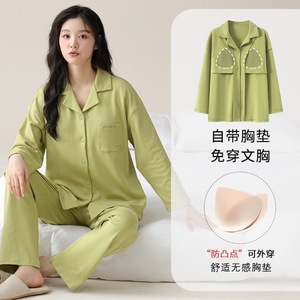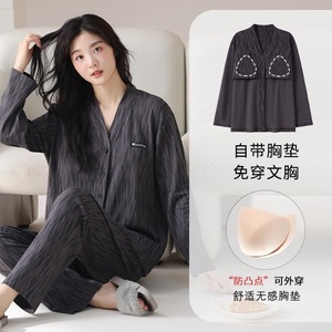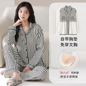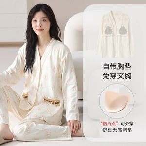 实体批发【26支棉质】梵沛诗# 带胸垫 睡衣女 春季开衫款家居服 M