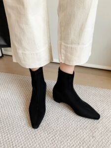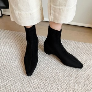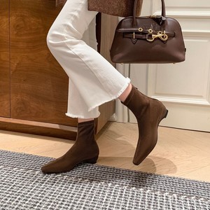 软皮版~复古绒面弹力瘦瘦靴后拉链通勤气质方头短靴女粗跟小裸靴