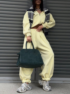 美式简约运动风宽松卫衣套装连帽拉链开衫抽绳阔腿直筒裤街头女装
