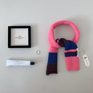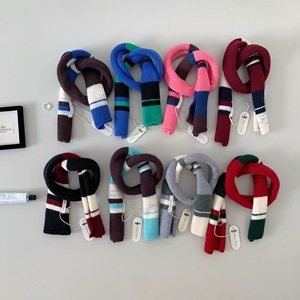 童趣~自制小众设计师款手工编织拼色条纹细围巾复古时髦中古围巾