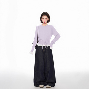 2025新款假两件蕾丝针织毛衣女秋冬季小个子短款收腰开衫外套上衣