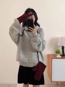 2025秋季新款韩版慵懒风横条纹理设计套头翻领外穿针织衫毛衣女装